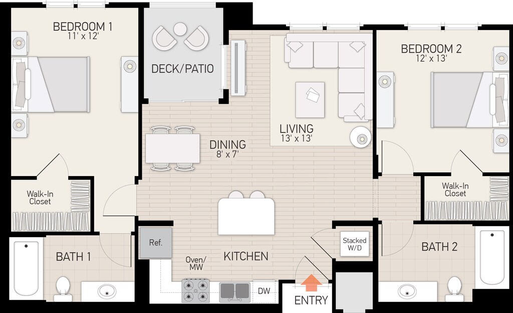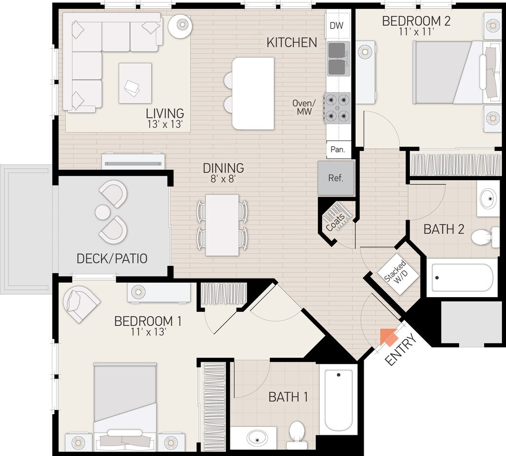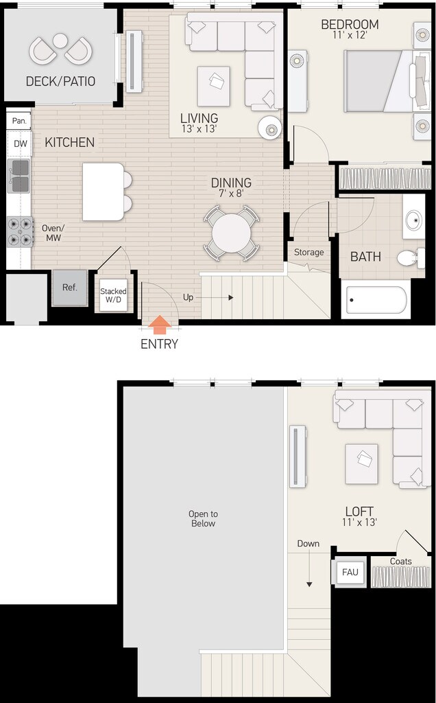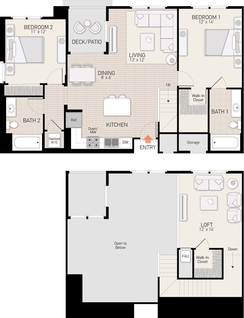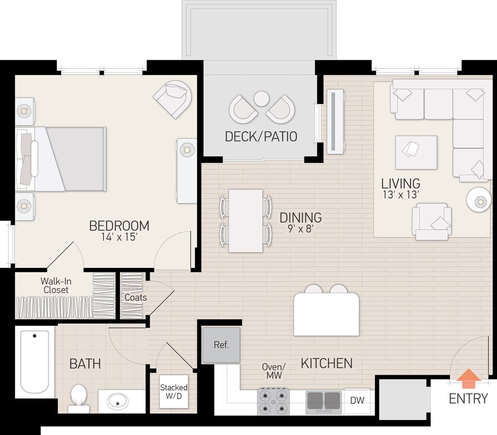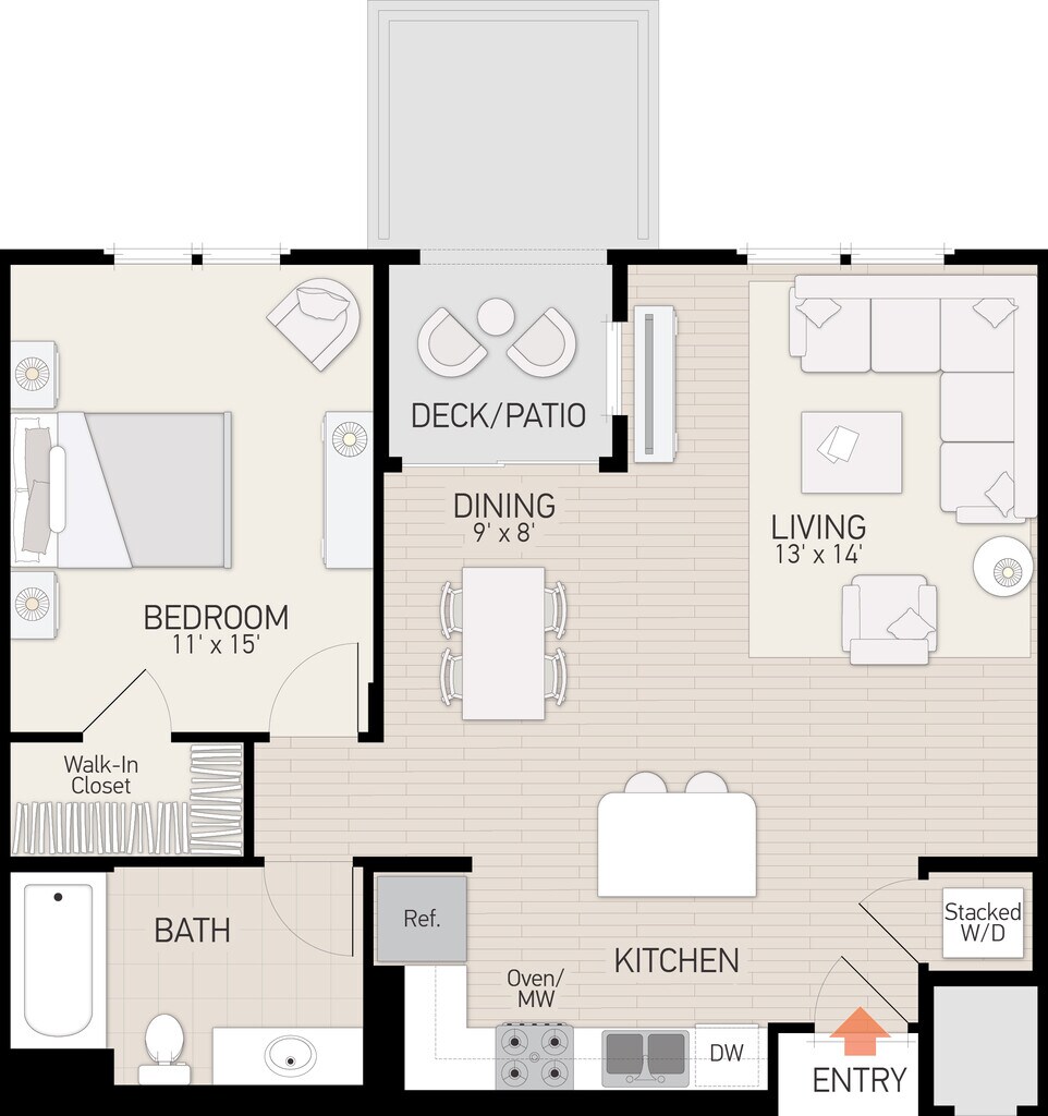 1 Bed, 1 Bath, 729 sq ftAvailable NowModel Gallery