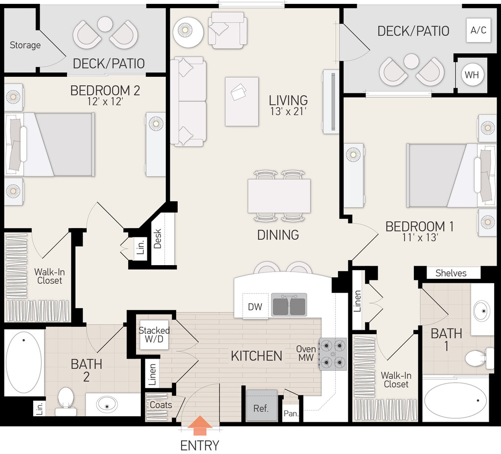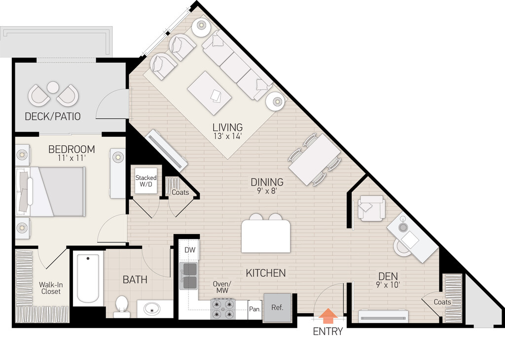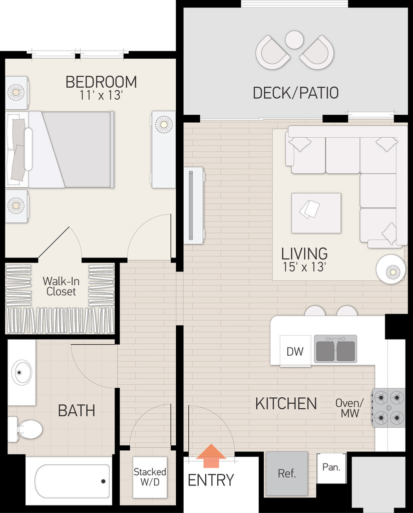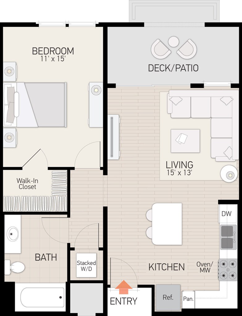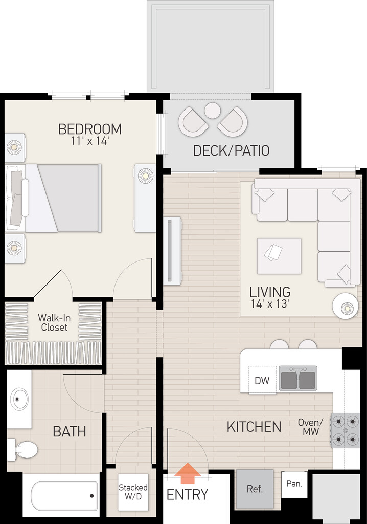 Apartment Model: Plan 4From $2,4951 Bedroom, 1 Bath, 729 sq ftAvailable Now![]()