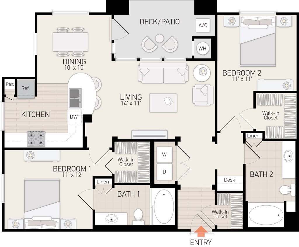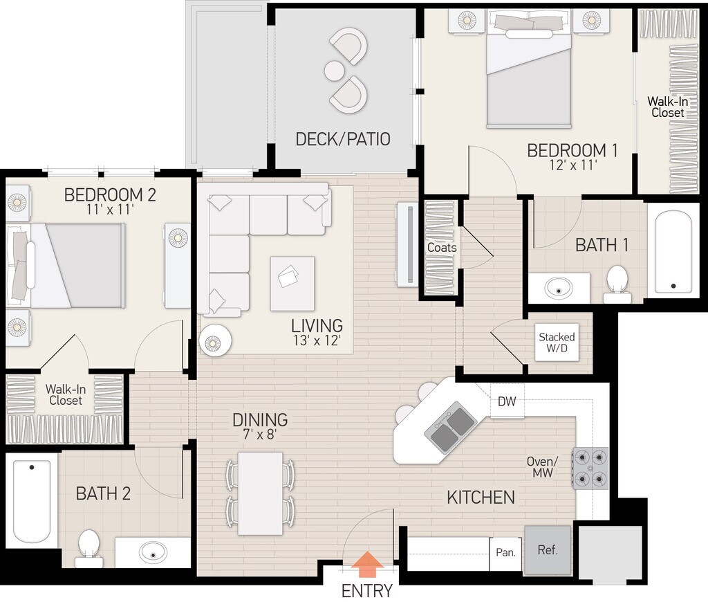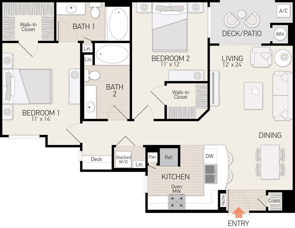 1 Bed, 1 Bath, 744 sq ftAvailable NowModel Gallery