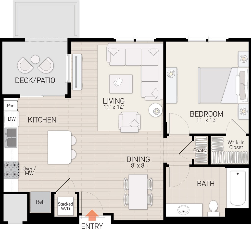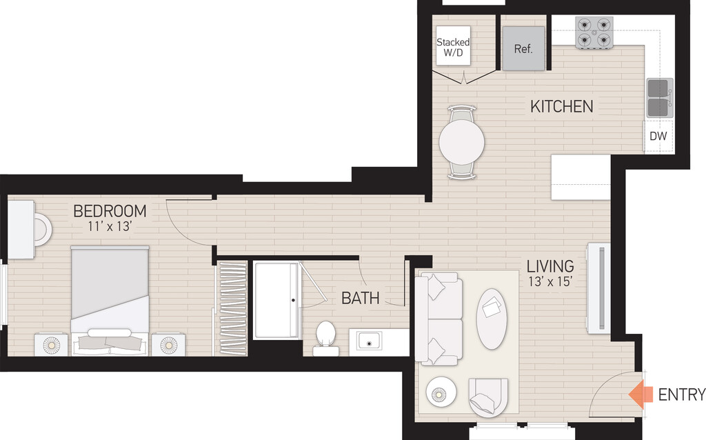 Studio, 1 Bath, 618 sq ftAvailable NowModel Gallery