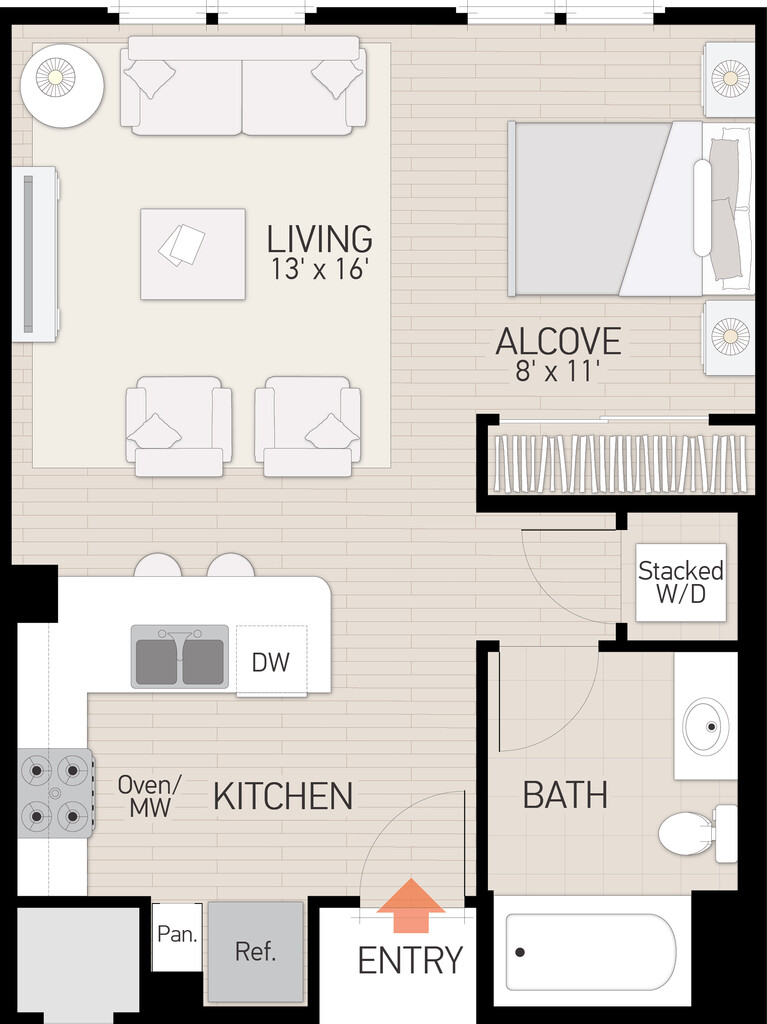 Apartment Model: Plan 1From $2,480Studio, 1 Bath, 618 sq ftAvailable Now![]()