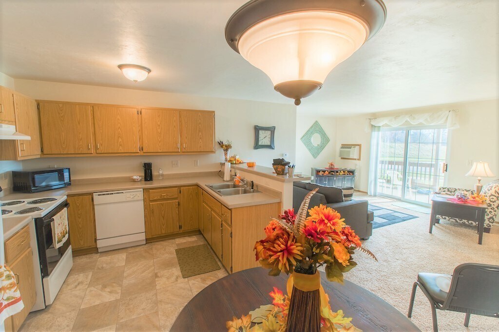 July 21, 2015Very nice place. It is located just outside of town on top of a huge hill next to some corn fields, so it is quiet. I would recommend the upstairs unit because the ceilings are lofted which opens the unit up a ton. The deck is nice, but you can not use your grill on it which is a bummer. The apartment itself is nice it is very open and there is plenty of space. The walk in closet is large and has a washer and drier already for you to use. It is nice not having to pay for heat in the winter ...because I know a lot of apartments are electrical heat and that can add up quicklyRead MoreReview from Apartments.com