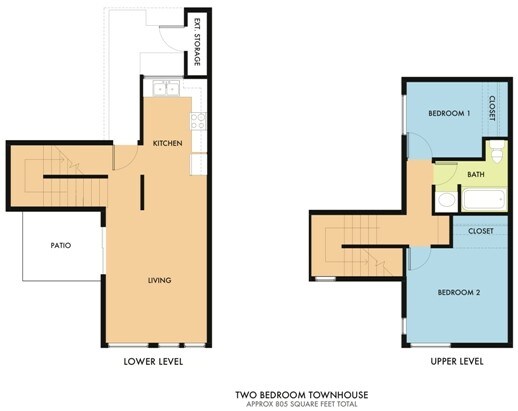 2 Bedroom Townhouse - Floorplan 1 2 Beds, 1 bath