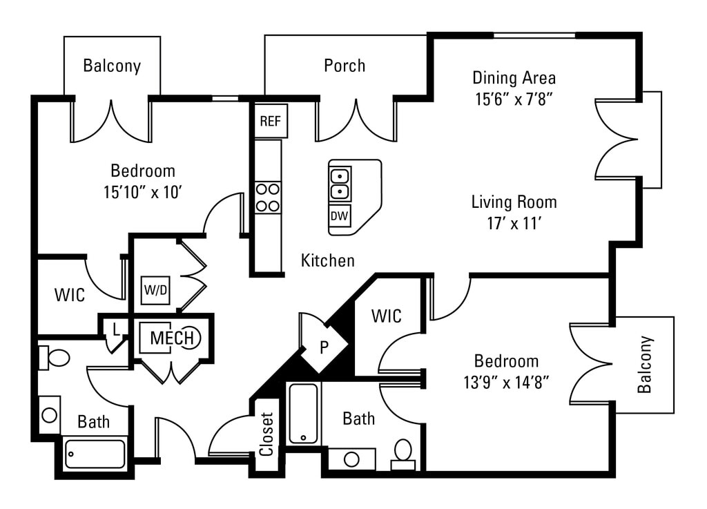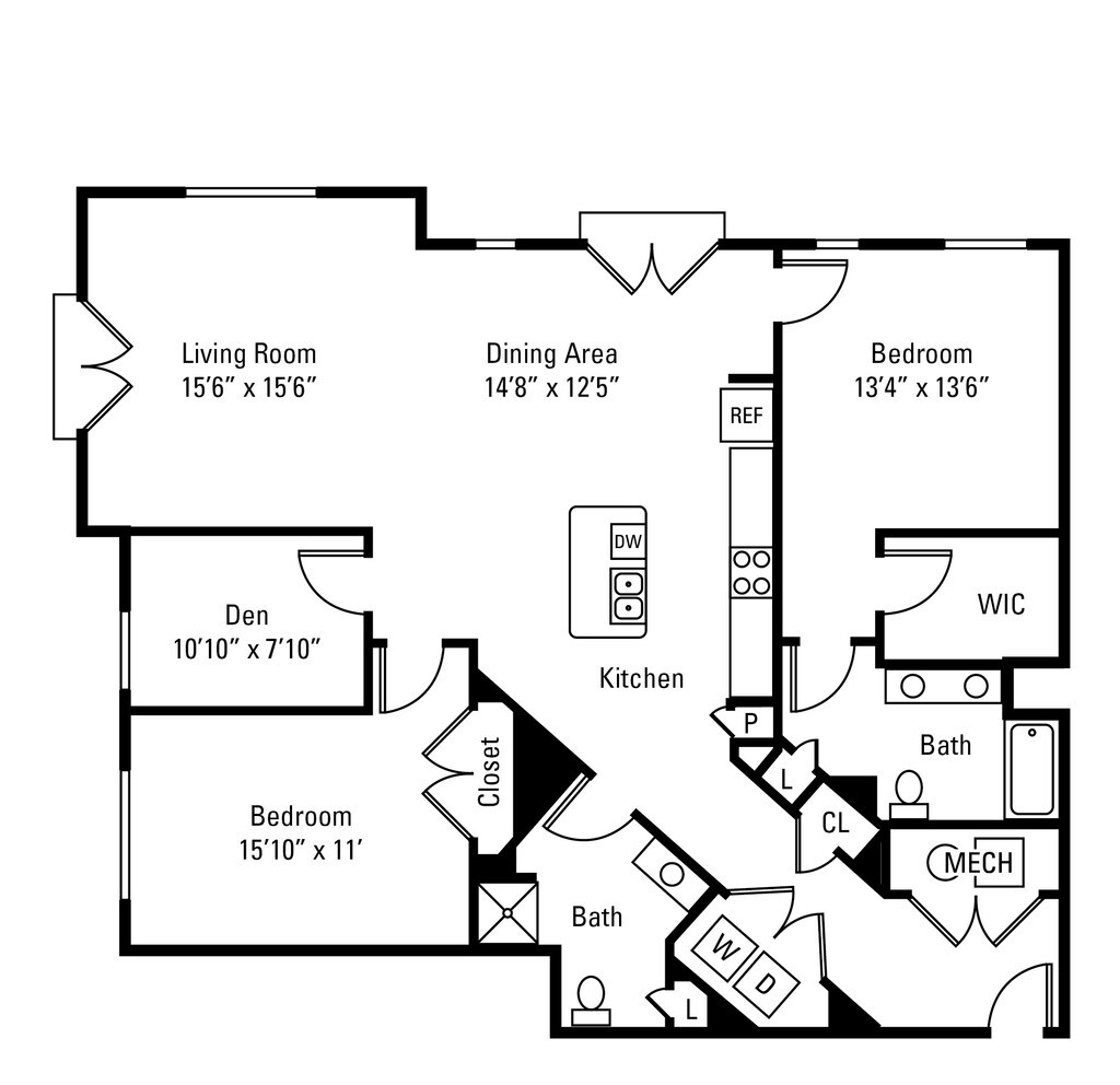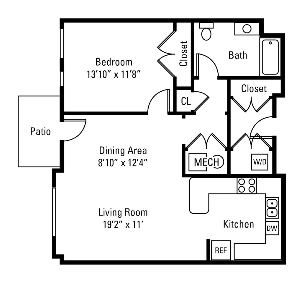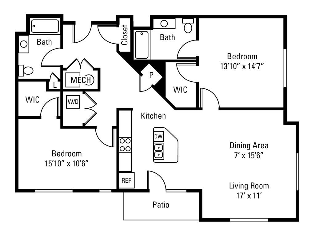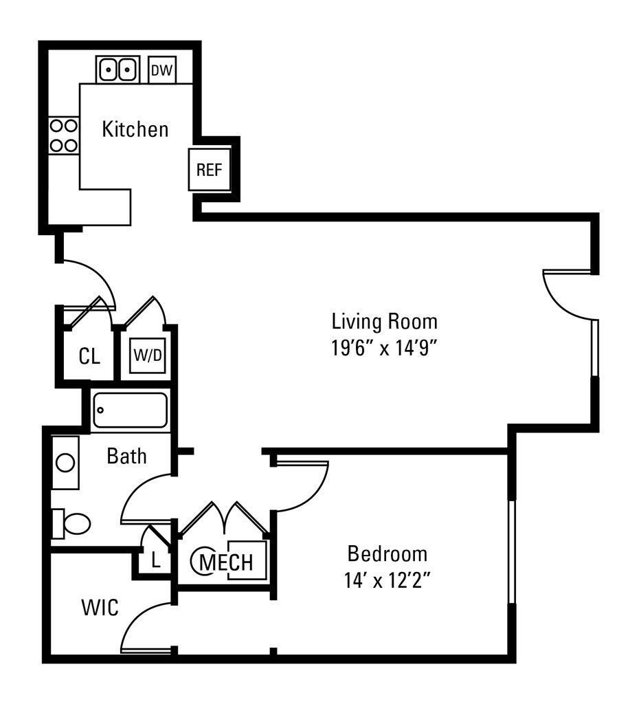 One Bedroom- 990 sqft - Floorplan 1 Apartment Unit: 1-206Apartment Model: One Bedroom- 990 sqft$1,7451 Bedroom, 1 Bath, 990 sq ftAvailable November 29, 2025One Bedroom- 1,005 sqft