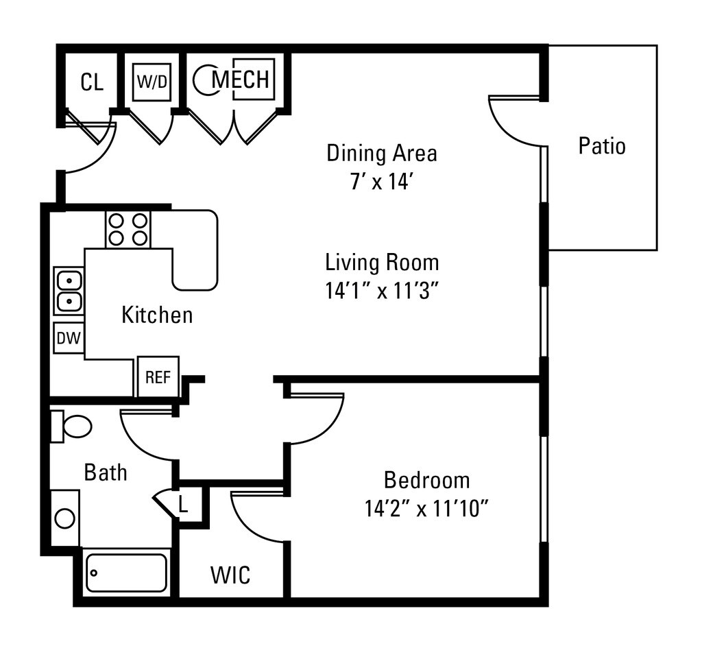 One Bedroom- 1,005 sqft - Floorplan 1 Apartment Unit: 1-310Apartment Model: One Bedroom- 1,005 sqft$1,7851 Bedroom, 1 Bath, 1005 sq ftAvailable December 9, 2025One Bedroom- 836 sqft