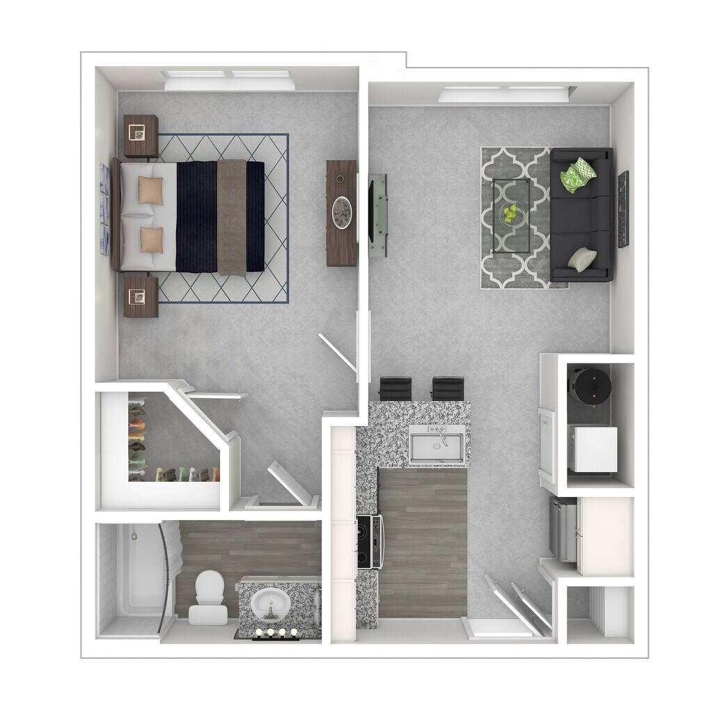 1 Bed, 1 Bath, 593 sq ftModel Gallery