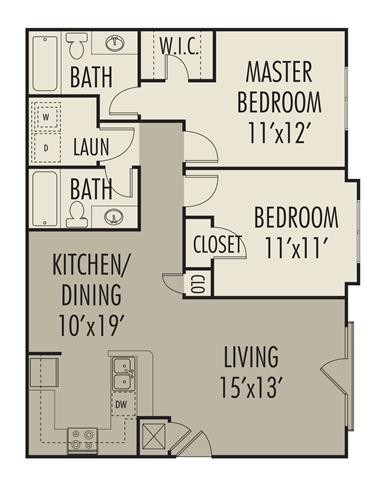Apartment Model: Waterbury1 Bedroom, 1 Bath, 657-756 sq ftUnavailable![]()