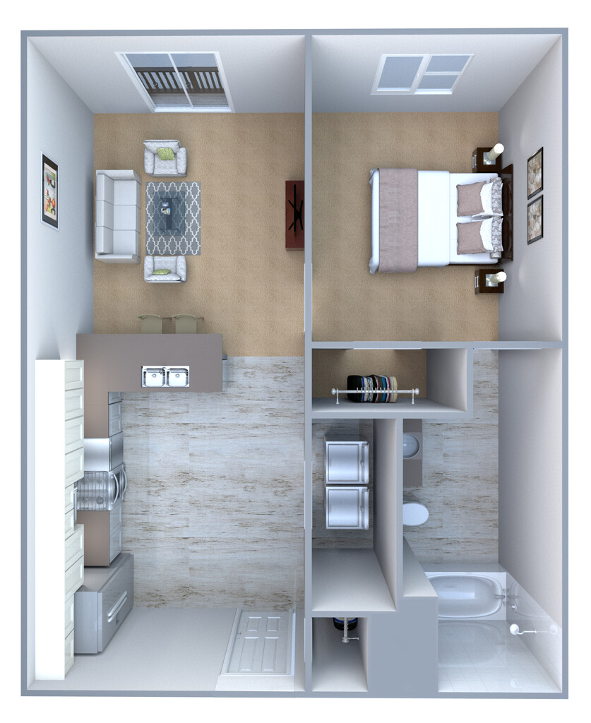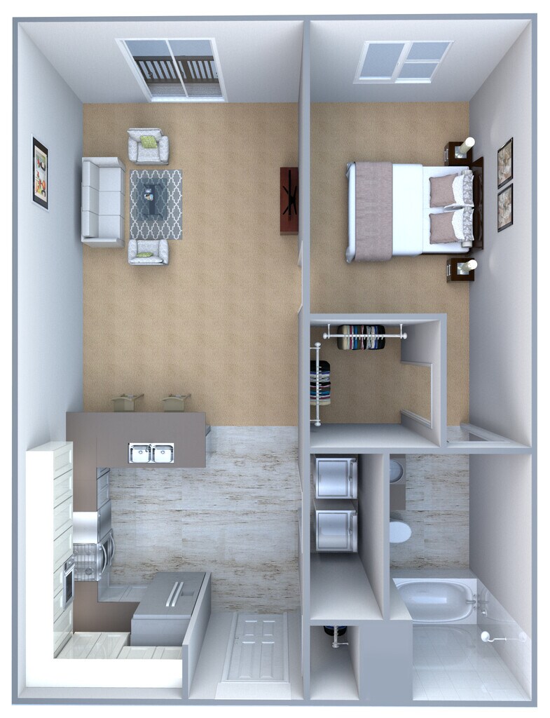 Studio, 1 Bath, 499 sq ftAvailable NowModel Gallery