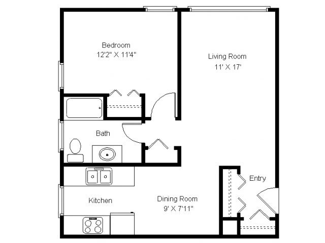 Renovated 1 Bedroom (sm) - Floorplan 1 1 Bedroom 1 Bath (lg)