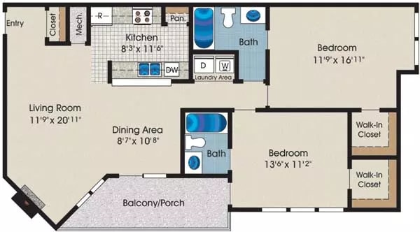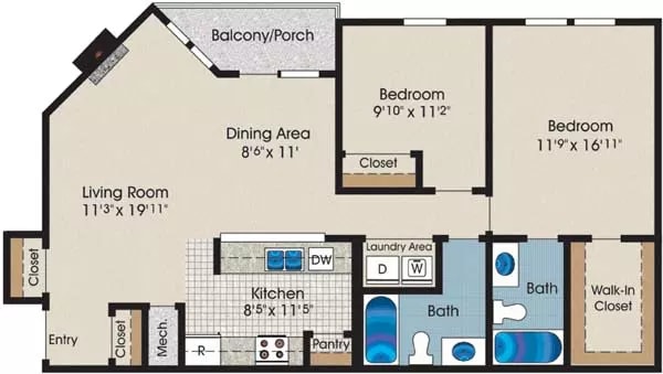 2 Beds, 2 Baths, 1035 sq ftLargest 2 BedroomThis is the largest 2 Bedroom at this PropertyModel Gallery