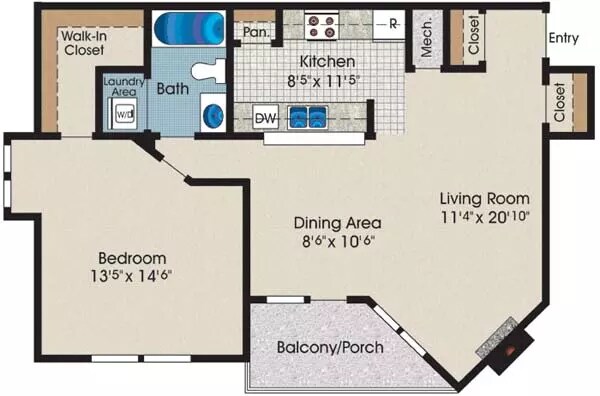 1 Bed, 1 Bath, 860 sq ftLargest 1 BedroomThis is the largest 1 Bedroom at this PropertyModel Gallery