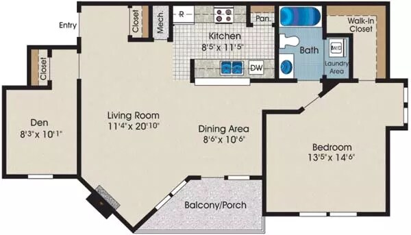 Apartment Model: The Bay with Den$1,7301 Bedroom, 1 Bath, 860 sq ftUnavailableThe Bay with Den - Floorplan 1 2 Bedrooms