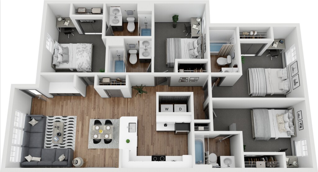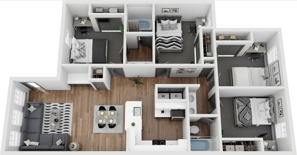 3x2 Renovated - Floorplan 1 Apartment Unit: PrivateApartment Model: 3x2 Renovated$8453 Bedroom, 2 Bath, 961 sq ftAvailable NowApartment Unit: PrivateApartment Model: 3x2 Renovated$8703 Bedroom, 2 Bath, 961 sq ftAvailable August 17, 20264 Bedrooms