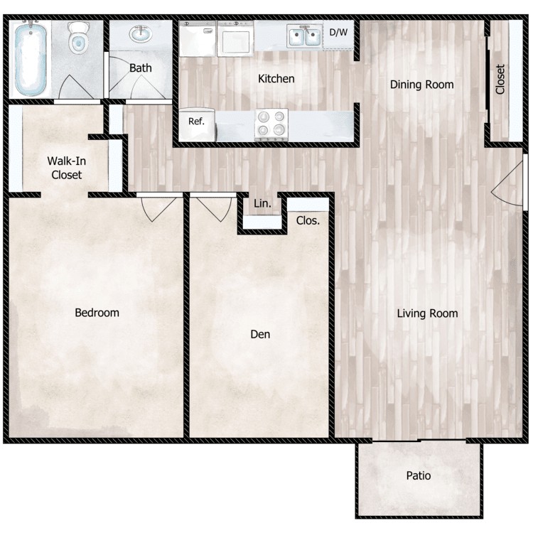 1 Bed, 1 Bath, 751 sq ftAvailable NowModel Gallery