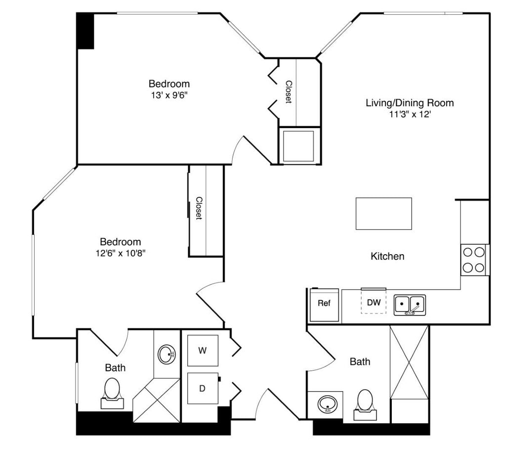 Apartment Model: 2x2Call For Rates2 Bedroom, 2 Bath, 777 sq ftUnavailableFloor plans are artist's rendering. All dimensions are approximate. Actual product and specifications may vary in dimension or detail. Not all features are available in every rental home. Prices and availability are subject to change. Base rent is based on monthly frequency. Additional fees may apply, such as but not limited to package delivery, trash, water, amenities, etc. Deposits vary. Please see a representative for details.