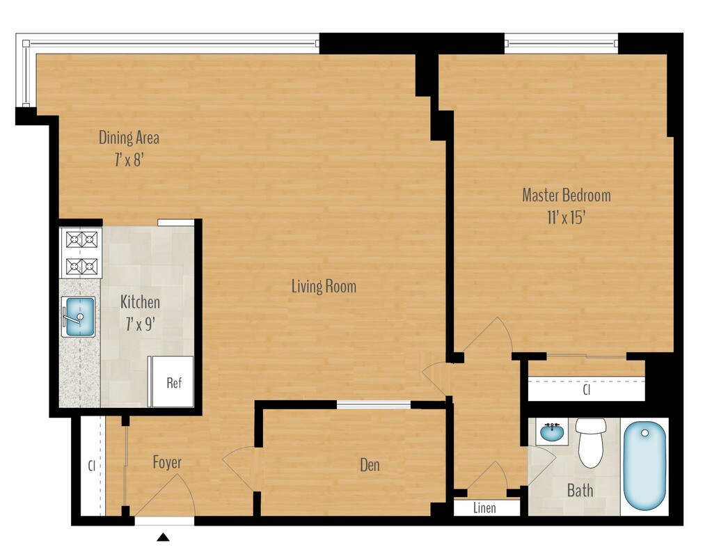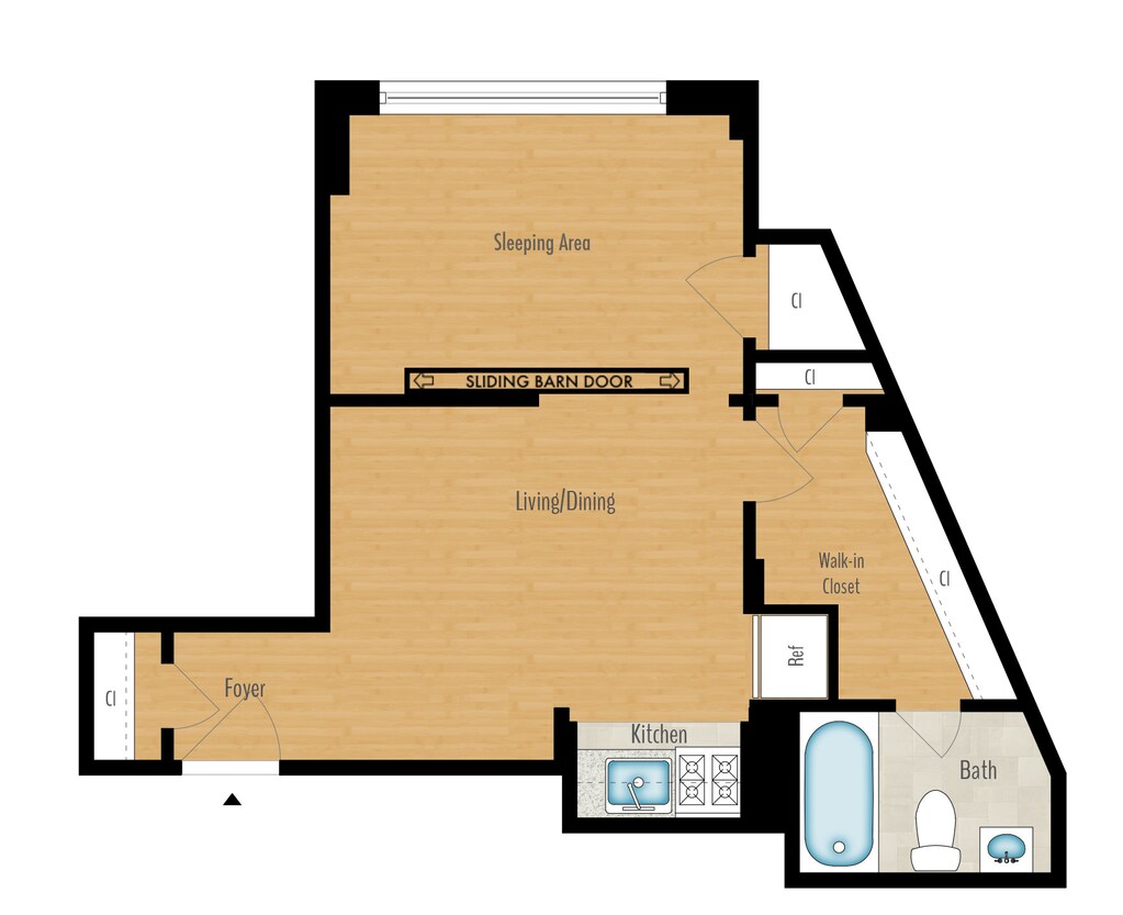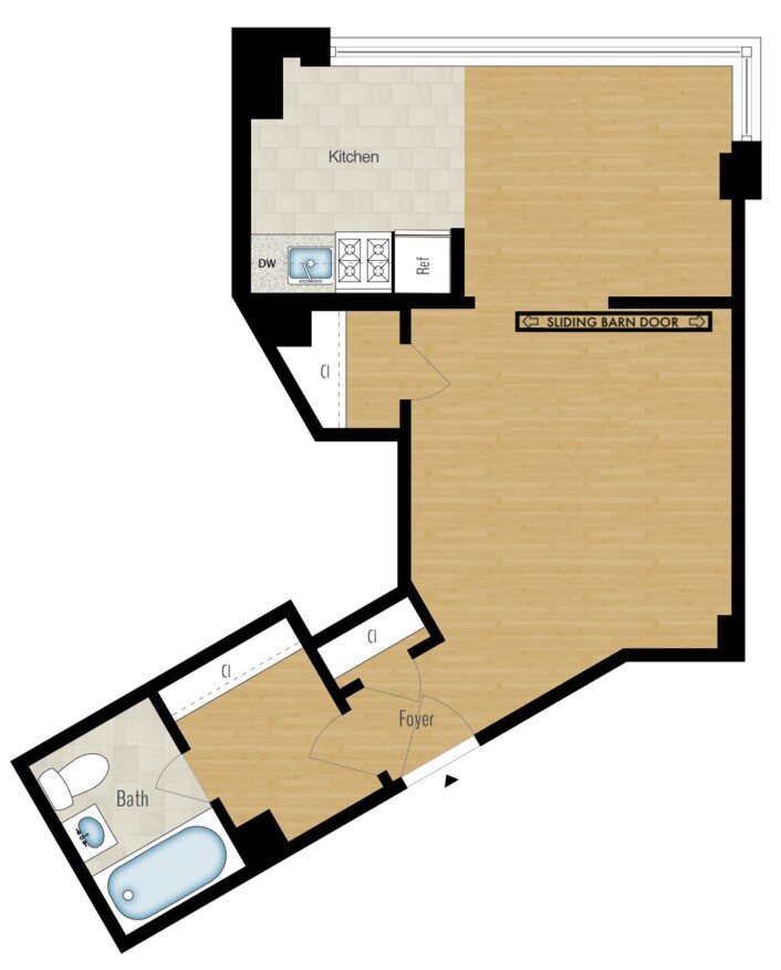Studio, 1 Bath, 394-499 sq ftAvailable NowModel Gallery