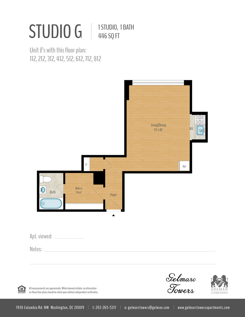 April 8, 2017Gelmarc Towers was my first apartment on my own and when moving to the Washington, DC area from Philadelphia, PA. Management was very polite and understanding with rent and the special you can't beat. My studio is spacious and renovated. I have NO pest problems at all. Maintenance is very responsive. There is ton of closet space and I am near EVERYTHING from nightlife, coffeeshops, and the metro Dupont. I would definitely suggest this apartment for anyone single or single couples with no ...children. You will be at peace where you lay your head at Gelmarc Towers.Read MoreReview from Apartments.com