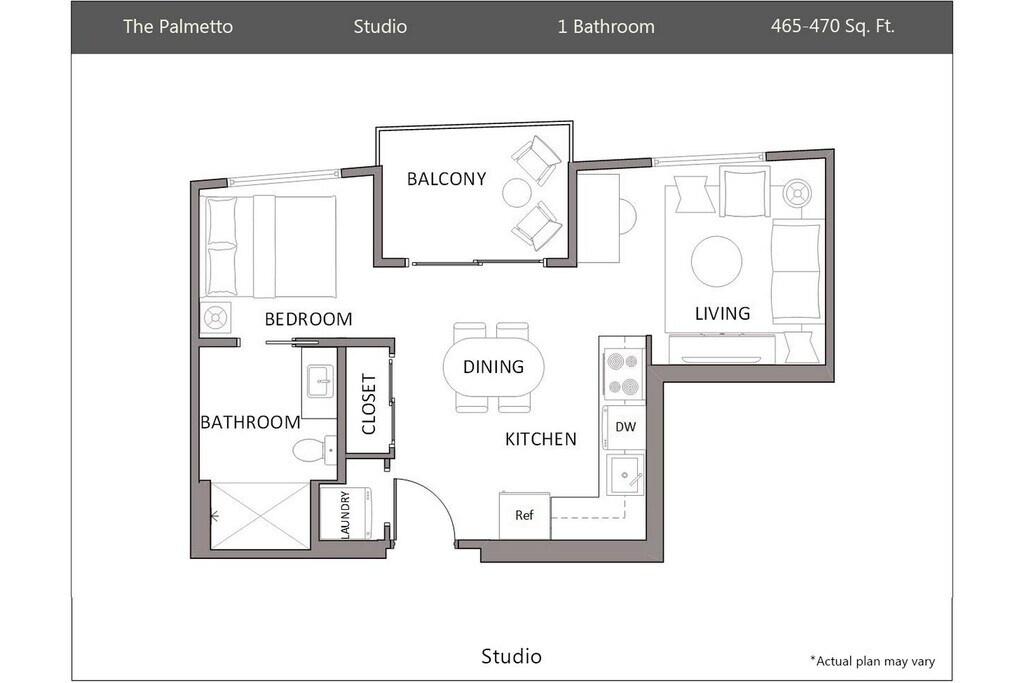 Studio, 1 Bath, 465 sq ftAvailable NowModel Gallery