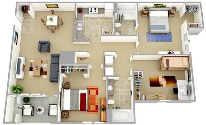 Apartment Model: Three Bedroom Two Bathroom 60%3 Bedroom, 2 Bath, 1050 sq ftAvailable Now![]()