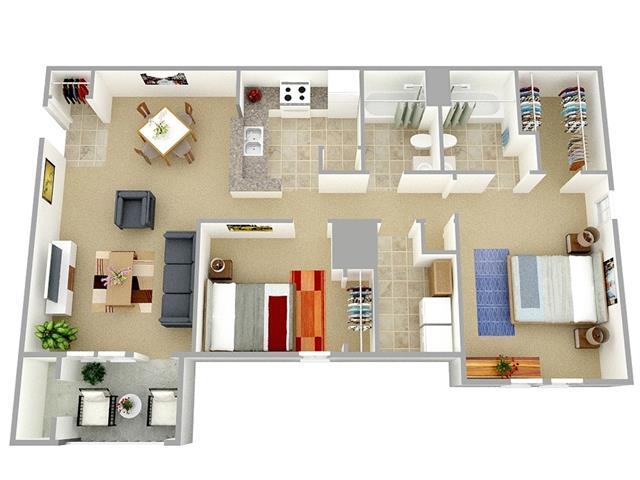 Apartment Model: Two Bedroom Two Bathroom 60%2 Bedroom, 2 Bath, 949 sq ftAvailable Now![]()