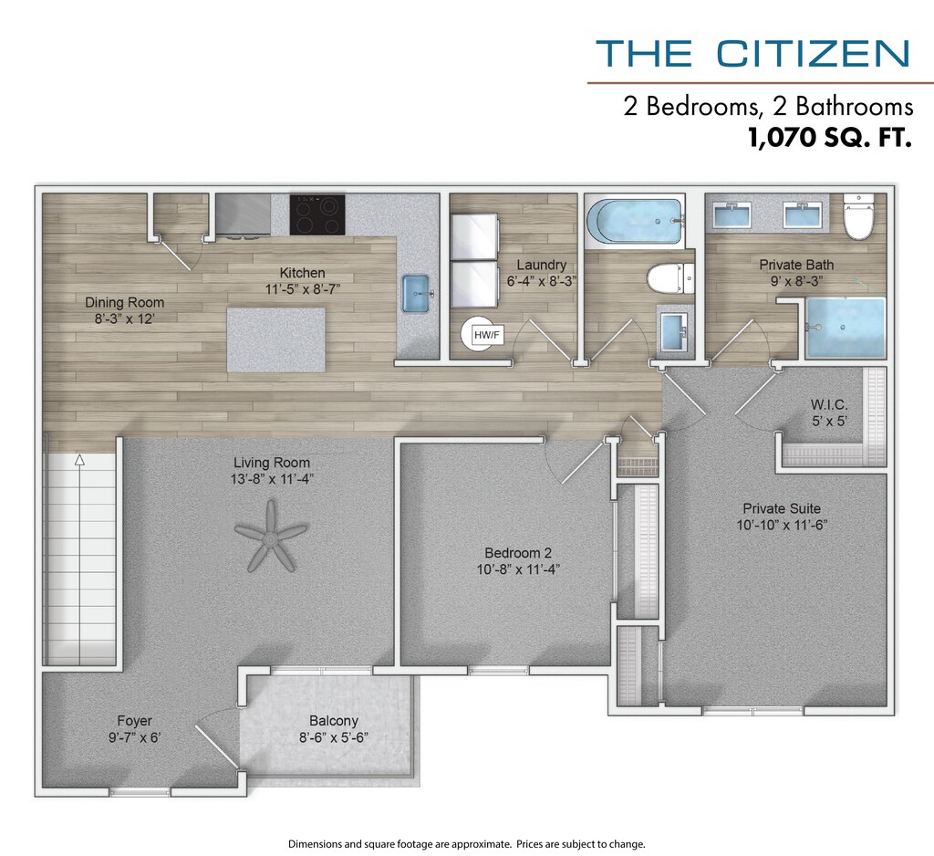 Apartment Model: Citizen2 Bedroom, 2 Bath, 1070 sq ftAvailable NowFloorplansPhotos![]()