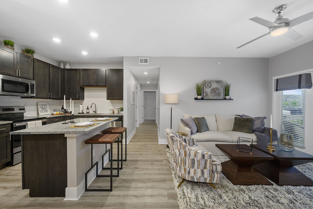 Picture the possibilities of life in your luxury two or three bedroom residence at Gentry East Apartments. This brand new home in Eastgate Cincinnati, Ohio, is teeming with upscale finishes and laid-back comforts. With open-concept rooms, soaring 9-foot ceilings, wood-grain flooring, and oversized windows, who wouldn't want to call Gentry East Apartments home? Pick from one of our modern floor plans, then all you have to do is settle in.