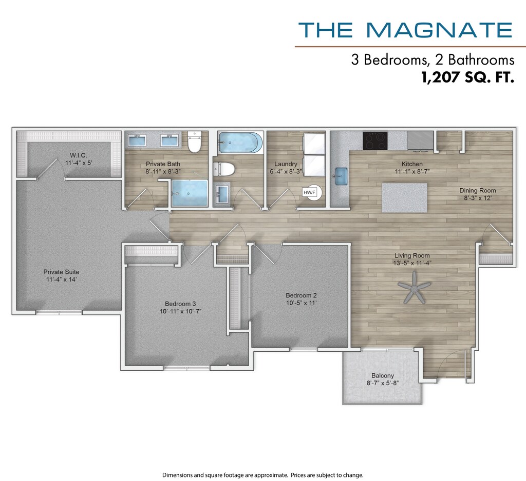 Apartment Model: Magnate3 Bedroom, 2 Bath, 1207 sq ftAvailable January 11, 2100![]()