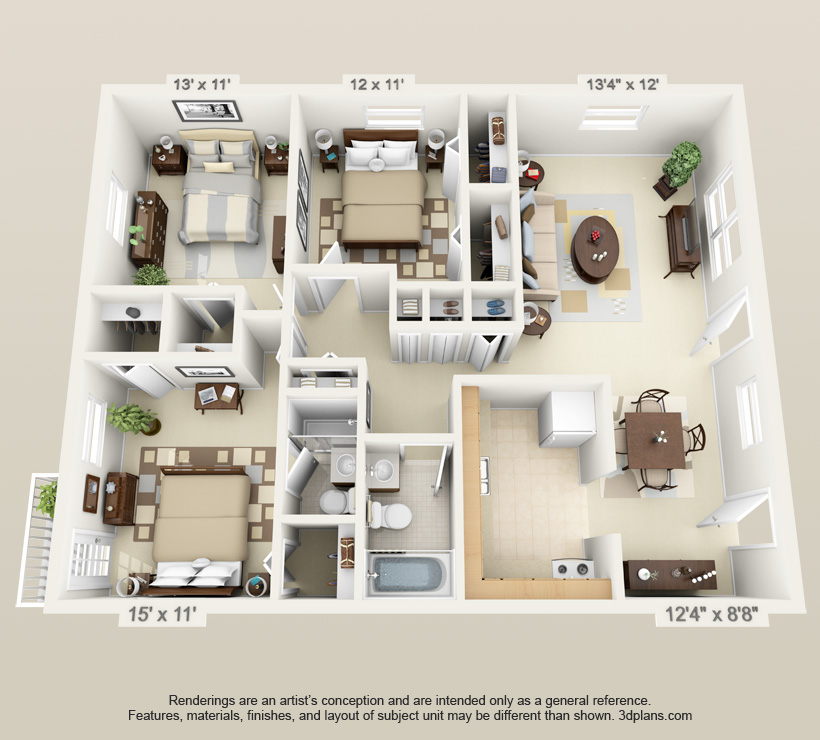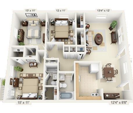 Apartment Model: 3 Bedroom3 Bedroom, 2 Bath, 1300 sq ftUnavailable![]()