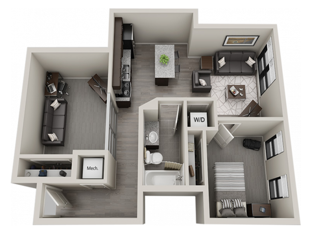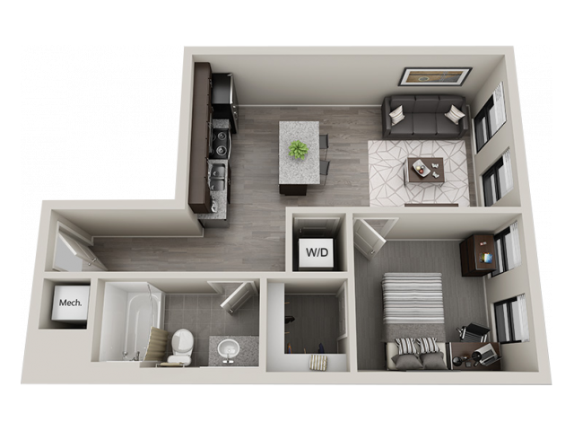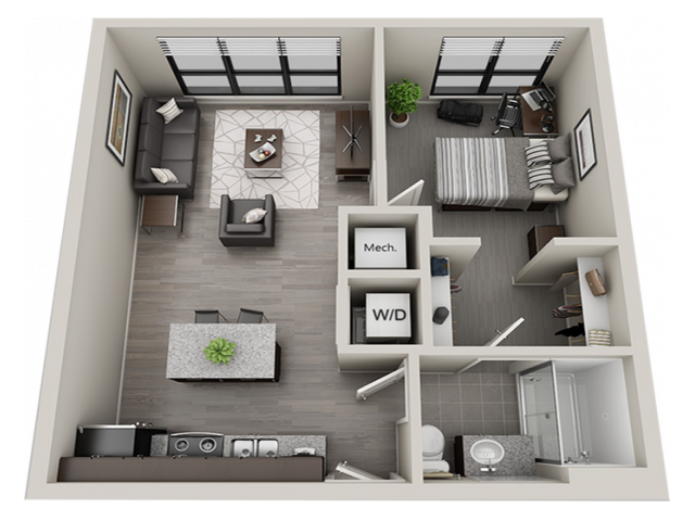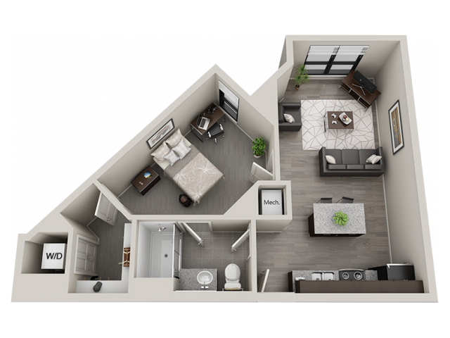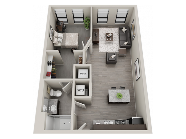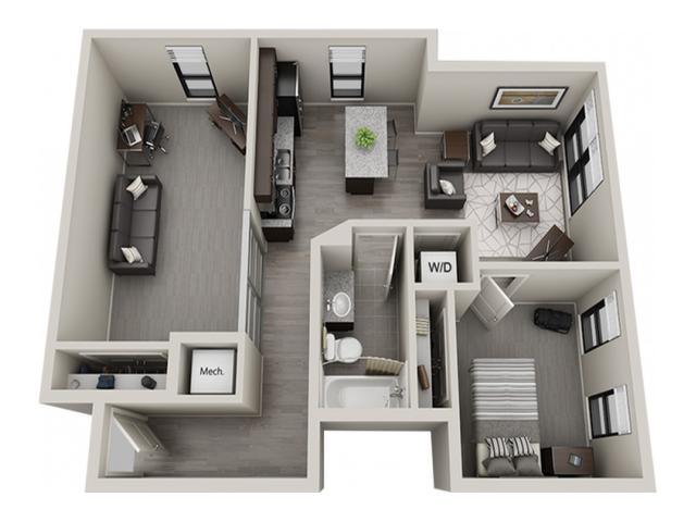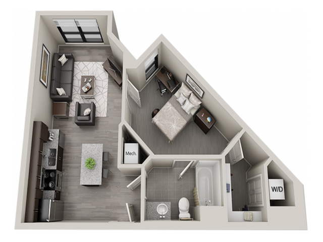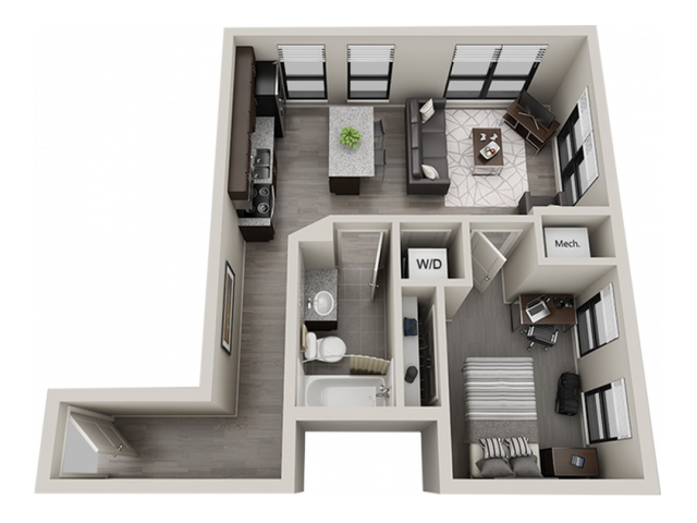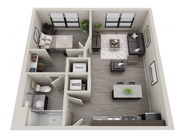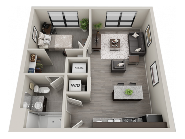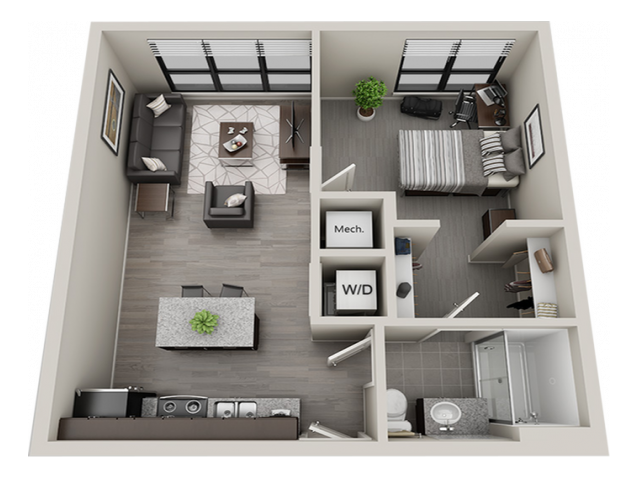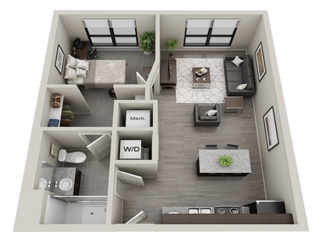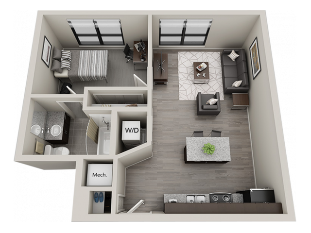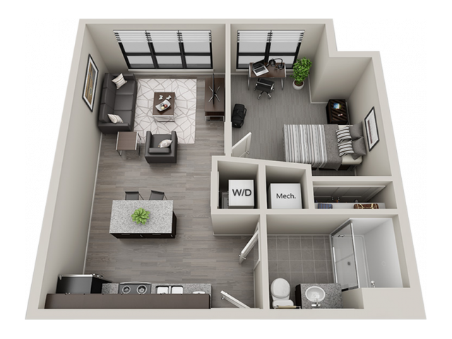 1 Bed, 1 Bath, 613 sq ftModel Gallery