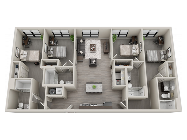 Apartment Model: 4x44 Bedroom, 4 Bath, 1468 sq ftUnavailable![]()