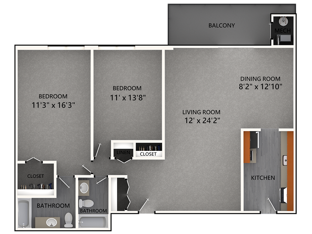 1 Bed, 1 Bath, 827 sq ftAvailable NowModel Gallery