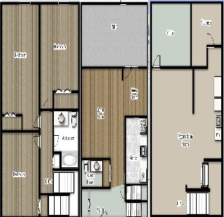 Two Bedroom Townhome - Floorplan 1 3 Bedrooms