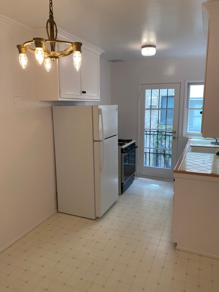 Featuring hardwood floors, a tiled bathroom, crown moldings, two-tone paint, ample closet space, antique fixtures and sconces, and a kitchen complete with glass cabinets as well as stove and refrigerator, this upper unit resides near the back of this rare and beautiful 1930s Southern Colonial Los Feliz estate. From your new dwelling, you will enjoy blissful quietness as well as tranquil views of the courtyard and bubbling 4-tier fountain.