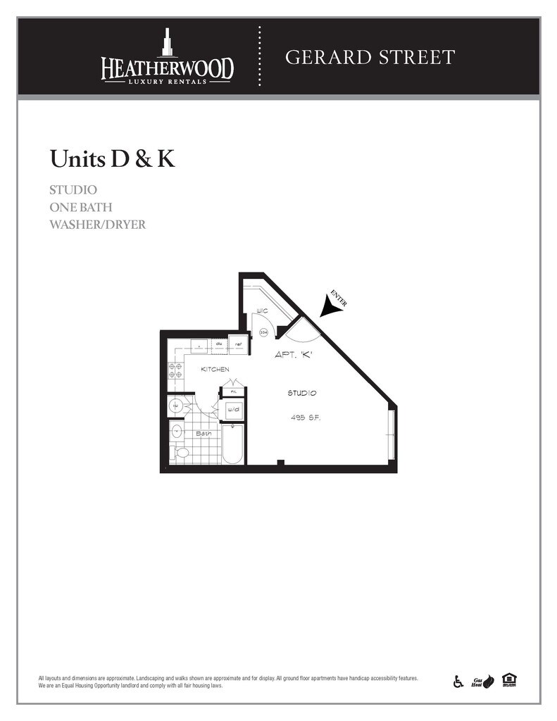 Gerard Street Apartments offers Studio to 2 Bedroom apartments starting from $2,792 and having 495–1,427 sq ft. Here is the current pricing and availability: