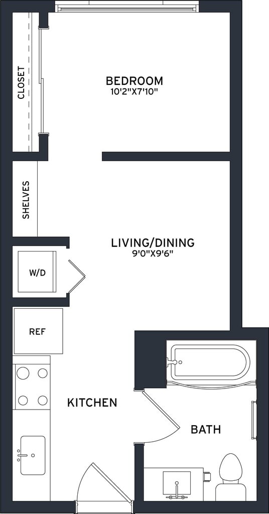 S1 - Floorplan 1 Apartment Unit: A410Apartment Model: S1$2,475Studio, 1 Bath, 372 sq ftAvailable NowFloorplan S3