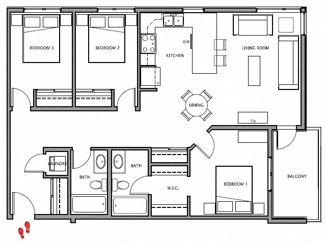 3 Bed 2 Bath A - Floorplan 1 Apartment Unit: 1-0129Apartment Model: 3 Bed 2 Bath A$2,0953 Bedroom, 2 Bath, 1118 sq ftAvailable Now