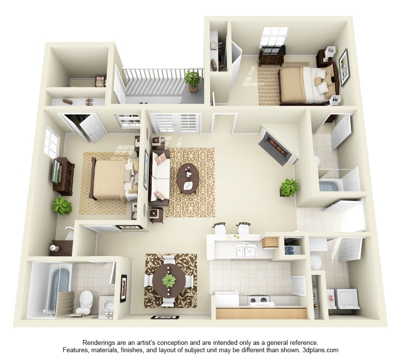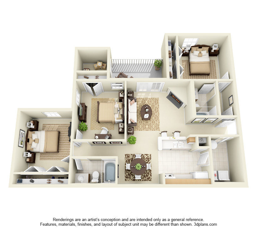 Apartment Model: Two Bedroom Two BathroomFrom $1,4102 Bedroom, 2 Bath, 1155 sq ftUnavailableTwo Bedroom Two Bathroom - Floorplan 1 3 Bedrooms