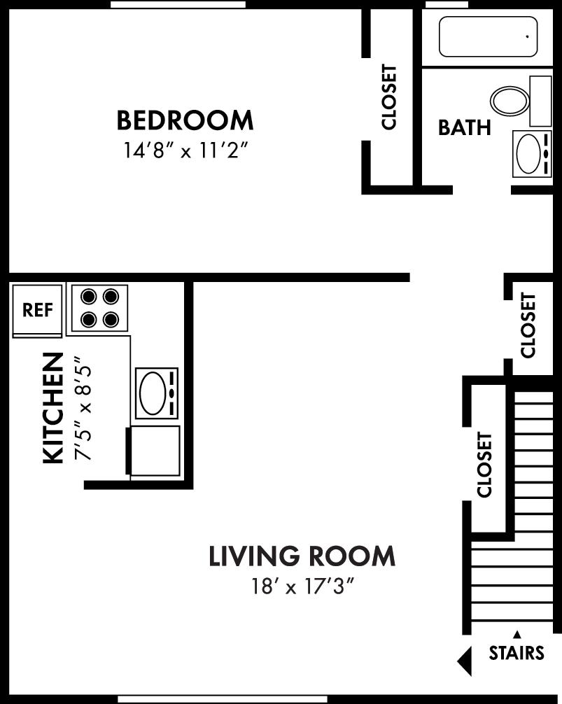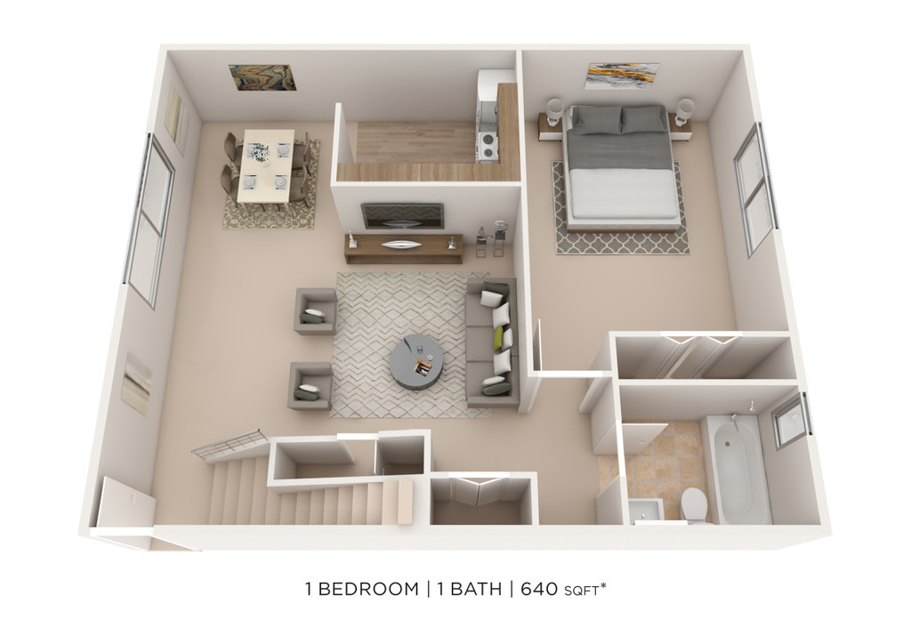 1 Bed, 1 Bath, 640 sq ftAvailable NowModel Gallery