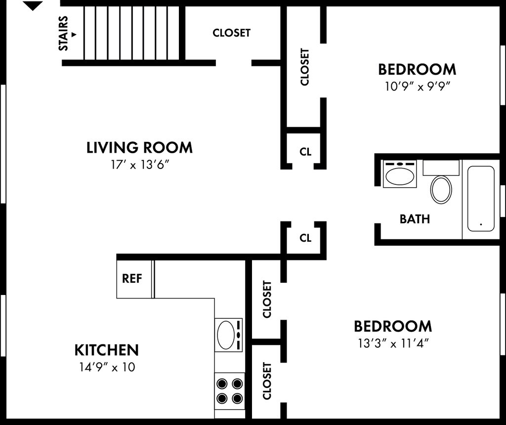 2 Beds, 1 Bath, 840 sq ftAvailable NowModel Gallery