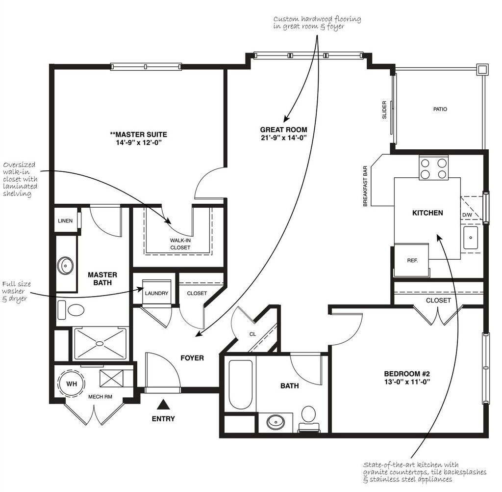 2 Beds, 2 Baths, 1109 sq ftModel Gallery