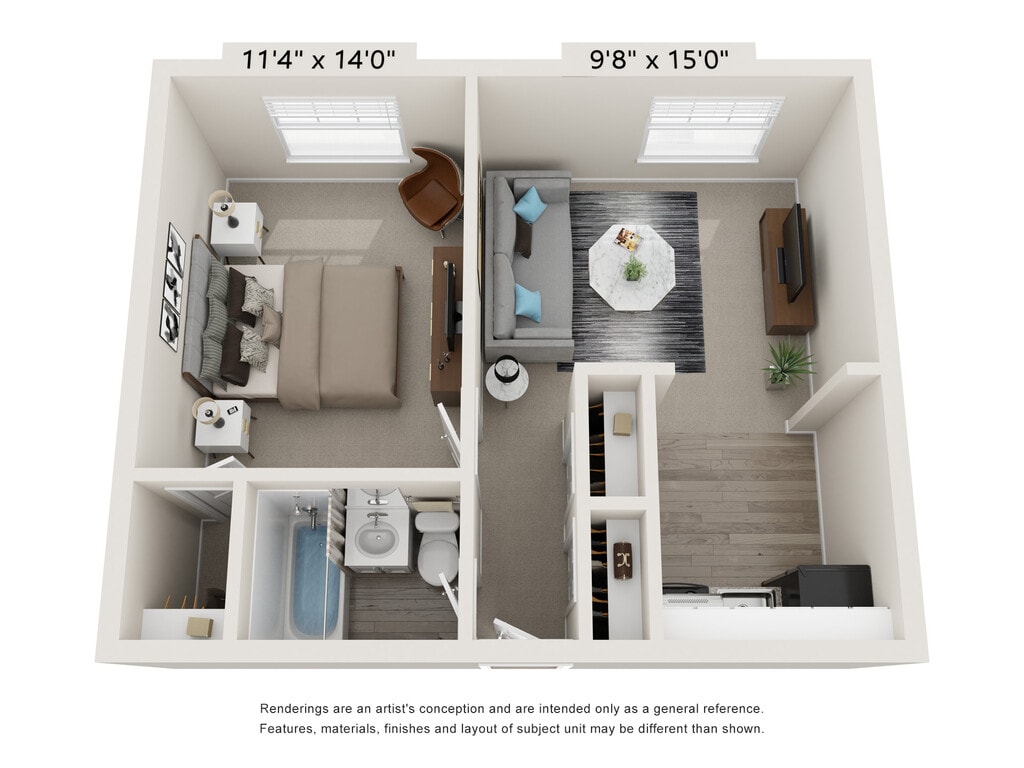 Efficiency - Floorplan 1 Apartment Unit: 1106Apartment Model: Efficiency$1,210Studio, 1 Bath, 380 sq ftAvailable NowStudio