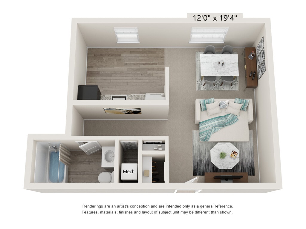 Studio, 1 Bath, 380 sq ftAvailable NowModel Gallery