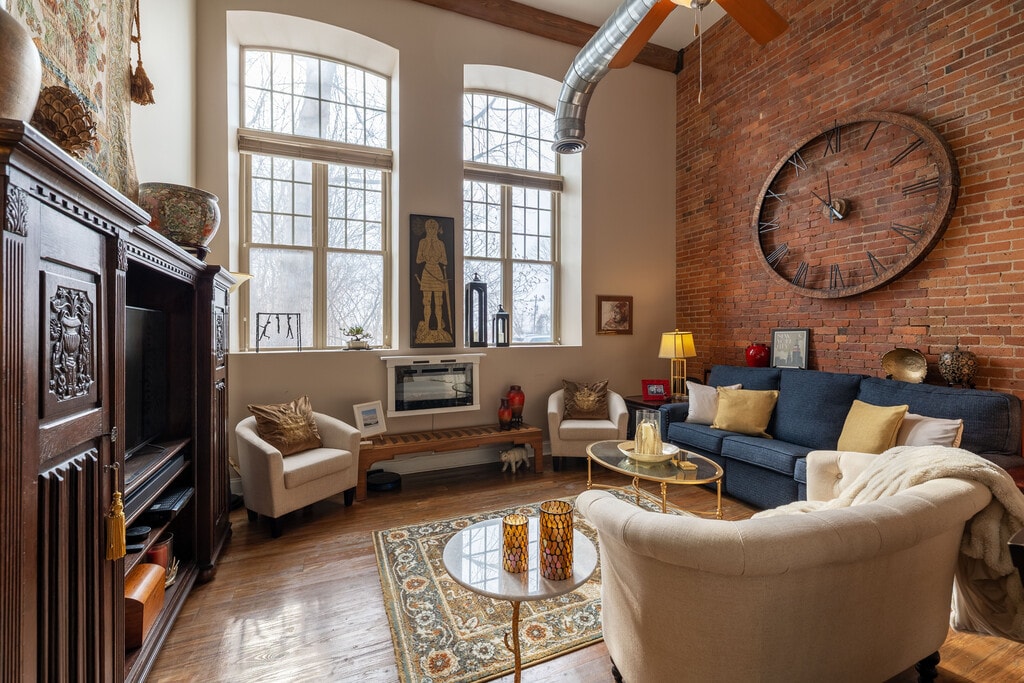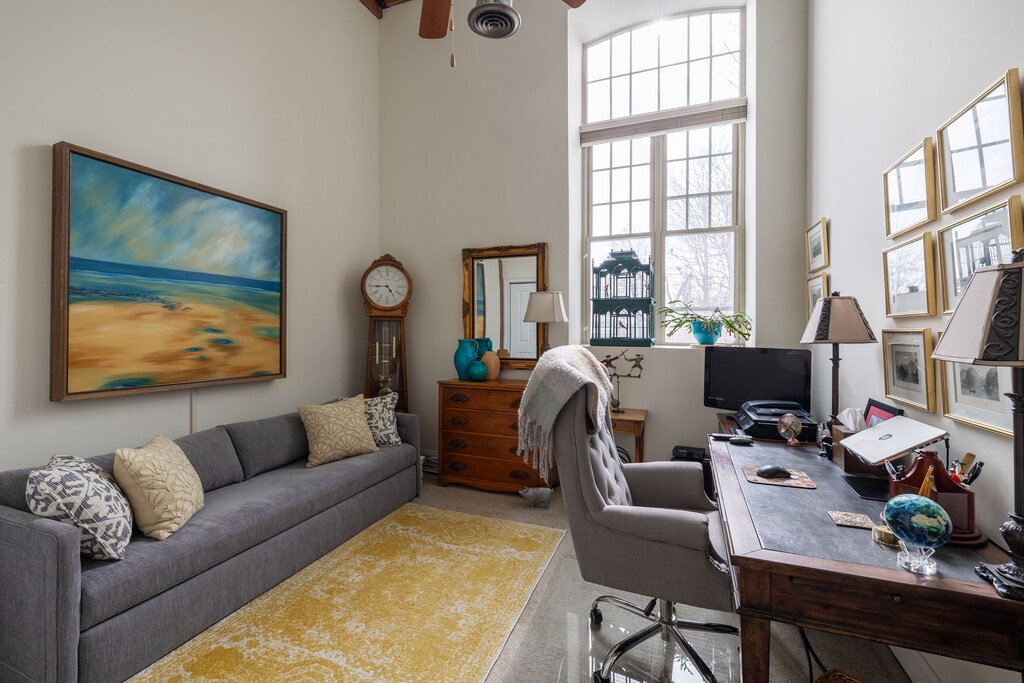 - 15 Ft. ceilings, custom blinds,