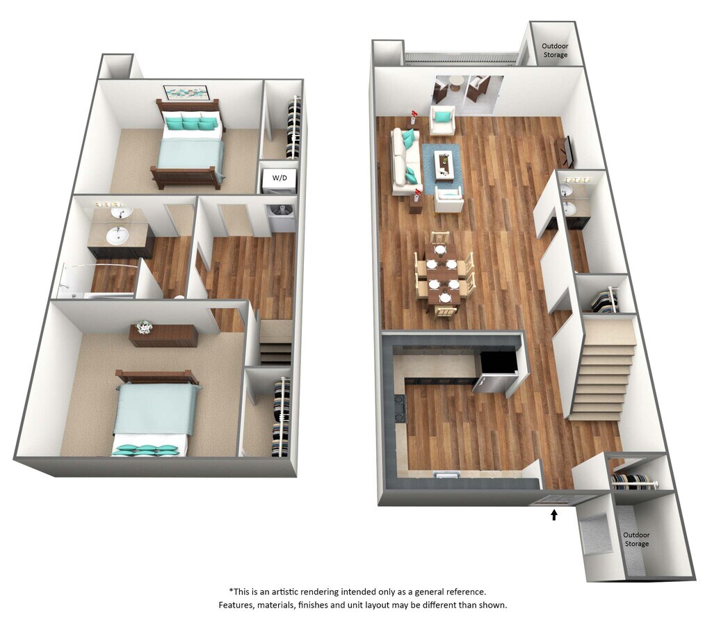 Apartment Model: 2 Bed 1.5 Bath Townhouse Classic - B2TC2 Bedroom, 1.5 Bath, 1061 sq ftAvailable December 12, 2025FloorplansPhotos![]()