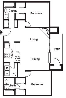 1 Bed 1 Bath Classic - A2C - Floorplan 1 2 Bedrooms
