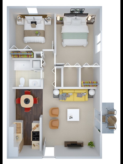 Apartment Model: 2 Bedroom PatioFrom $9002 Bedroom, 1 Bath, 925 sq ftUnavailable![]()