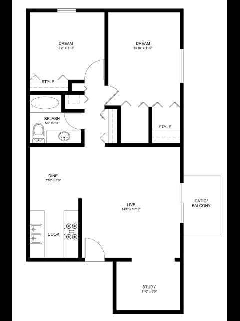 2 Bedroom Patio - Floorplan 2 2 Bedroom Balcony