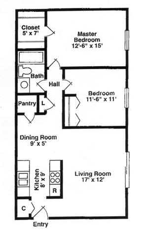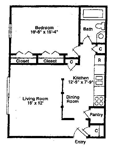Apartment Model: 2 Bedroom Apartment2 Bedroom, 1 Bath, 668 sq ftUnavailable2 Bedroom Apartment - Floorplan 1 2 Bedroom Townhome