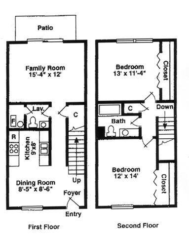 Apartment Model: 3 Bedroom Townhome3 Bedroom, 1.5 Bath, 1294 sq ftUnavailable3 Bedroom Townhome - Floorplan 1 3 Bedroom Townhome - Floorplan 2