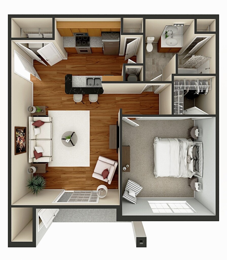 1 Bed, 1 Bath, 850 sq ftModel Gallery